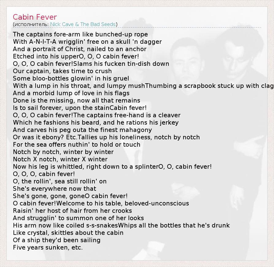 А как ты думаешь, о чем песня "Cabin Fever" ?