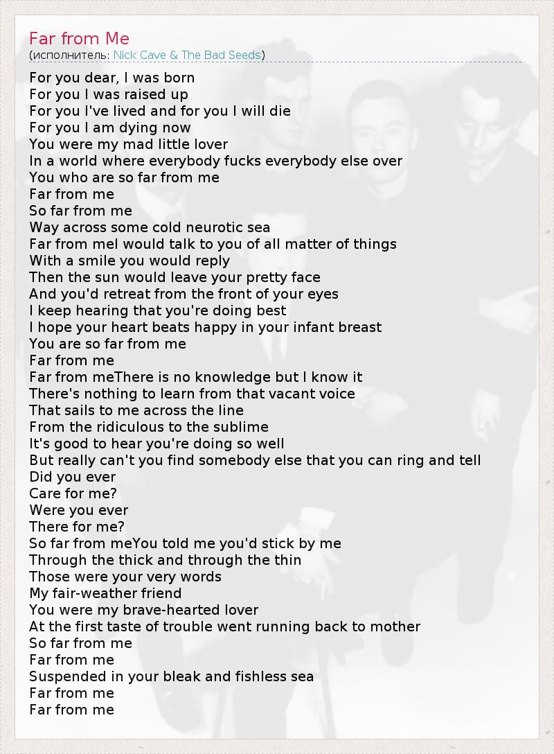 А как ты думаешь, о чем песня "Far from Me" ?