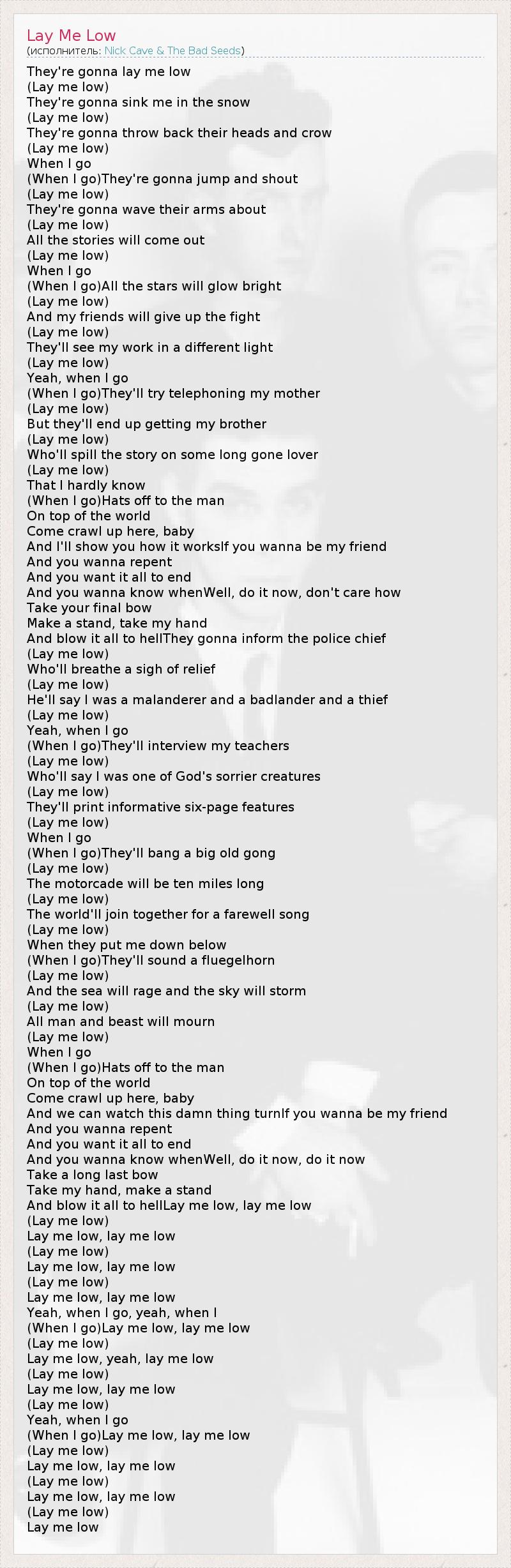 А как ты думаешь, о чем песня "Lay Me Low" ?