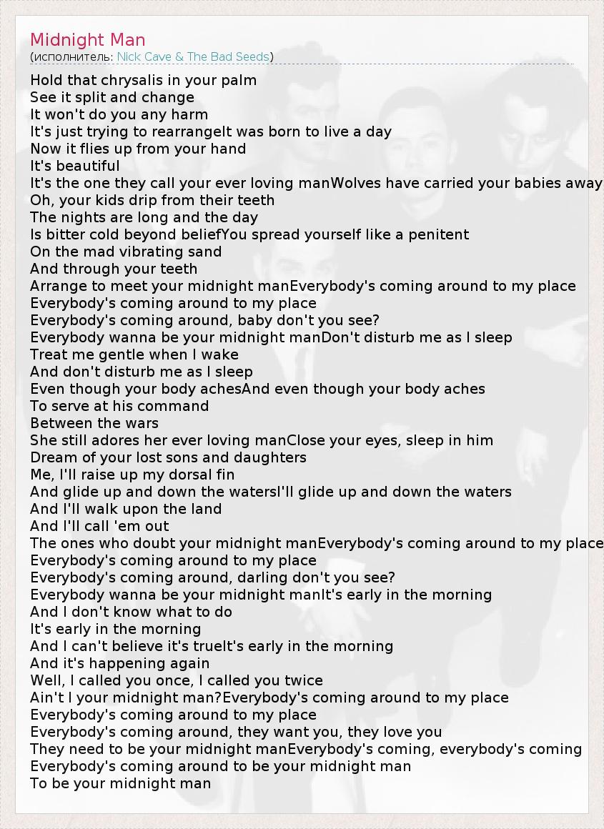 А как ты думаешь, о чем песня "Midnight Man" ?