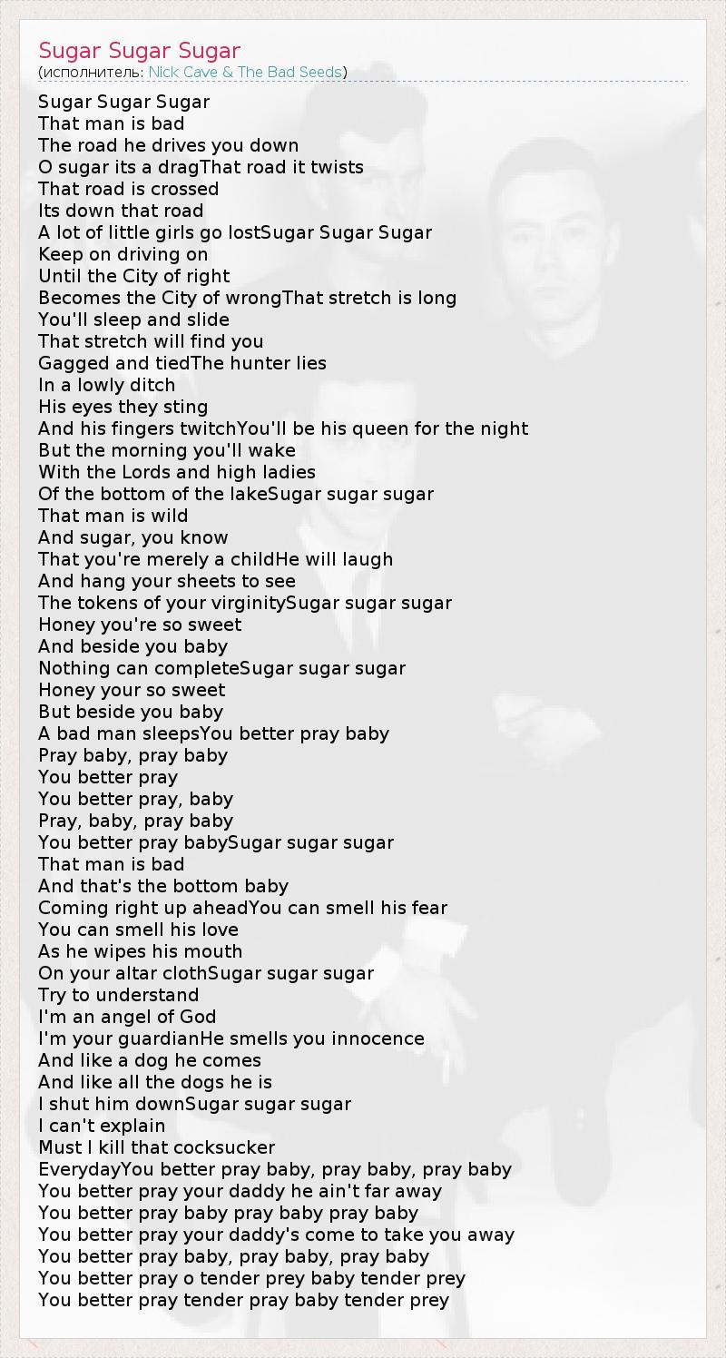 А как ты думаешь, о чем песня "Sugar Sugar Sugar" ?
