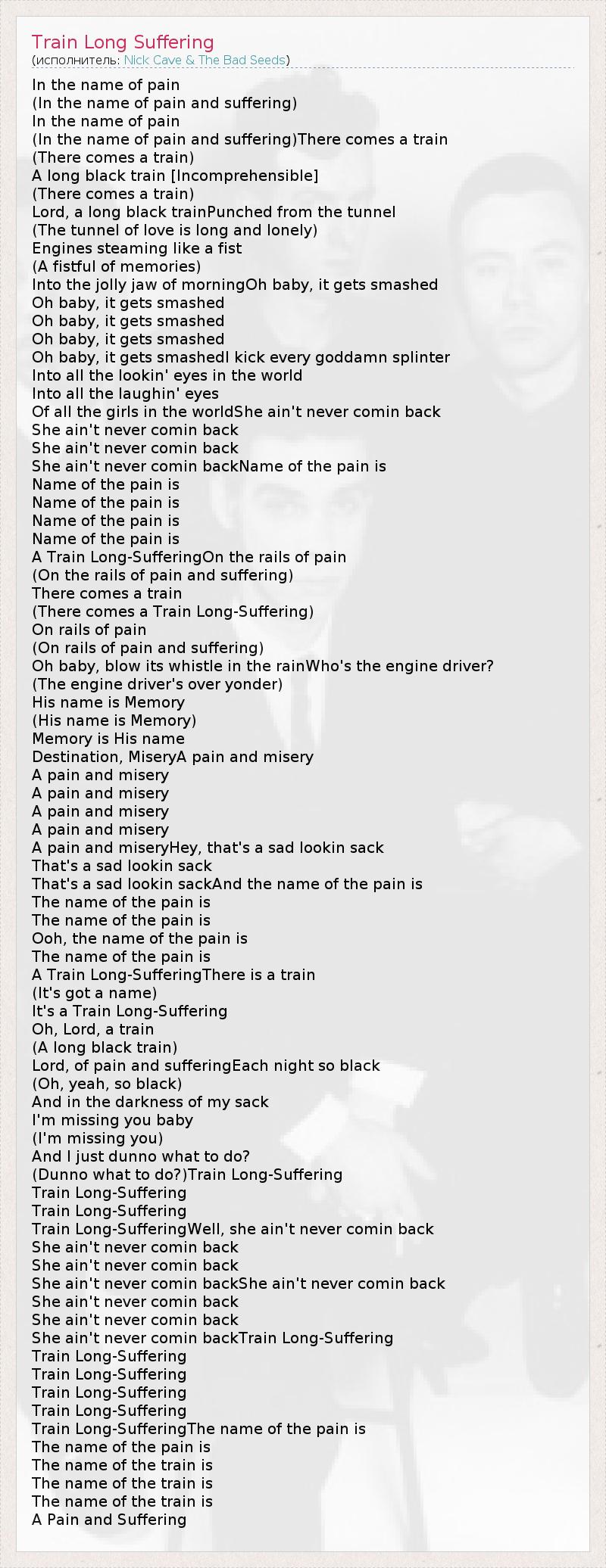 А как ты думаешь, о чем песня "Train Long Suffering" ?