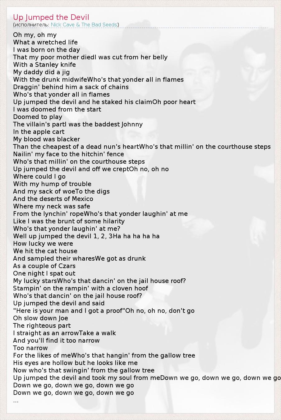 А как ты думаешь, о чем песня "Up Jumped the Devil" ?