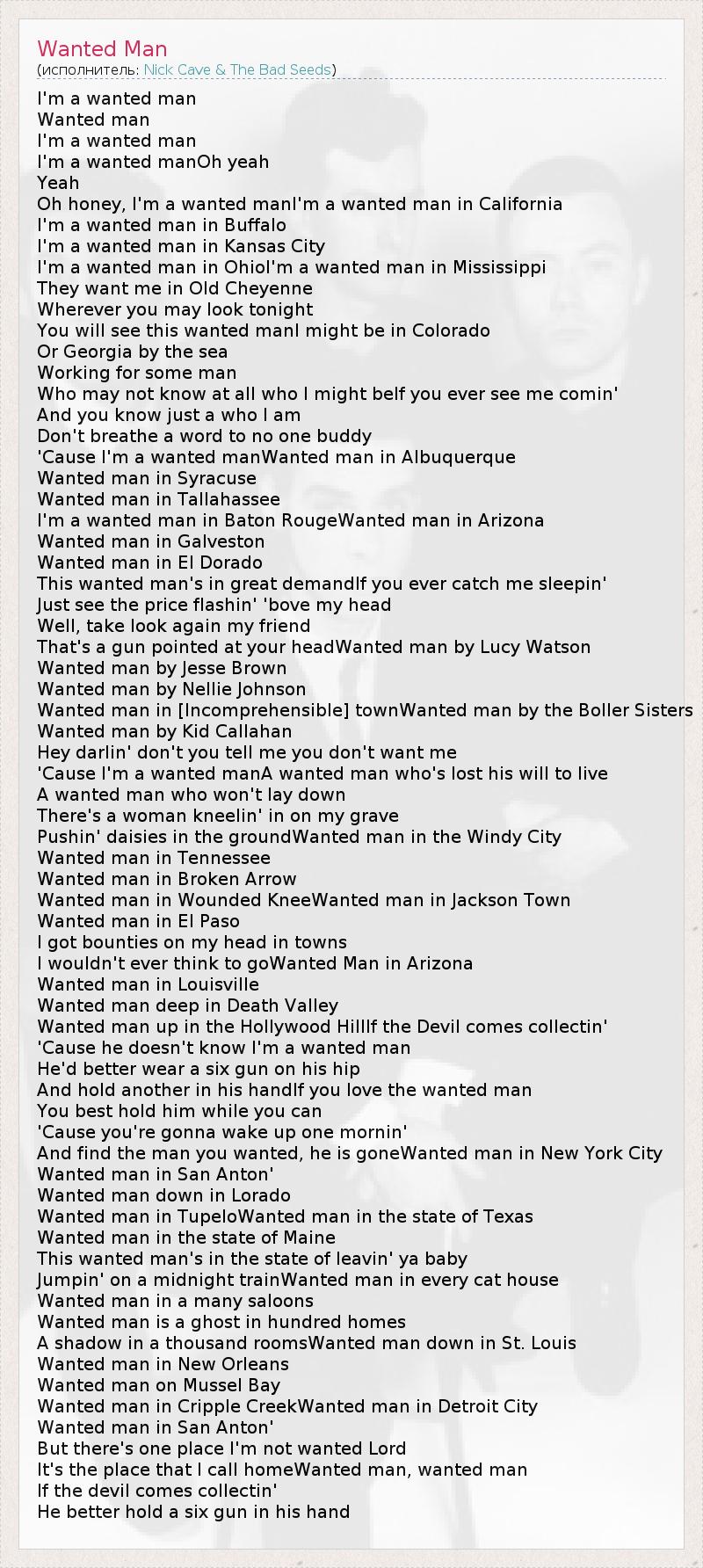 А как ты думаешь, о чем песня "Wanted Man" ?