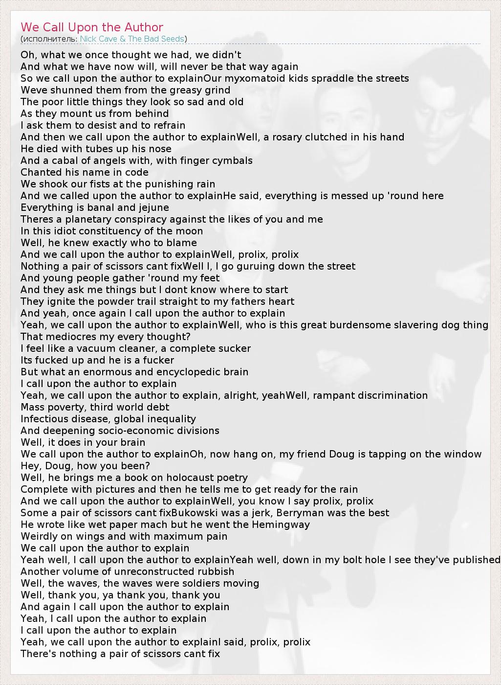 А как ты думаешь, о чем песня "We Call Upon the Author" ?