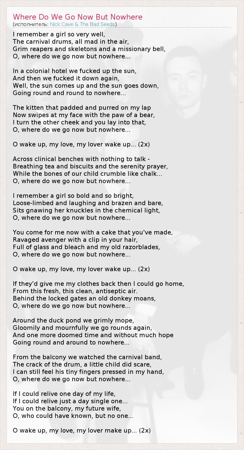 А как ты думаешь, о чем песня "Where Do We Go Now But Nowhere" ?