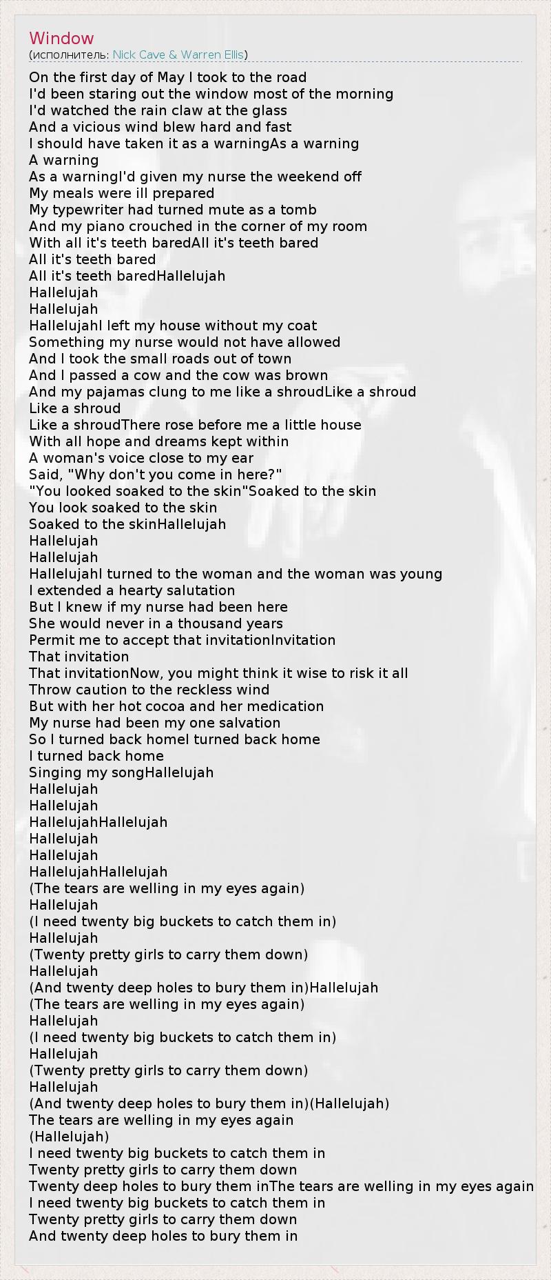 Это интересно:Ник Кейв (Nick Cave) и его партнер по "The Bad Seeds", "Grinderman" и "The Dirty Three" Уоррен Эллис (Warren Ellis) сотрудничают уже более 15 лет. На их счету саундтреки к фильмам "Предложение" (The Proposition 2005), "Как трусливый Роберт Форд убил Джесси Джеймса" (The Assassination of Jesse James by the Coward Robert Ford 2007) и "Дорога" (The Road 2009). 21 сентября 2009 был выпущен двухдисковый альбом "White Lunar", содержащий совместные... продолжение