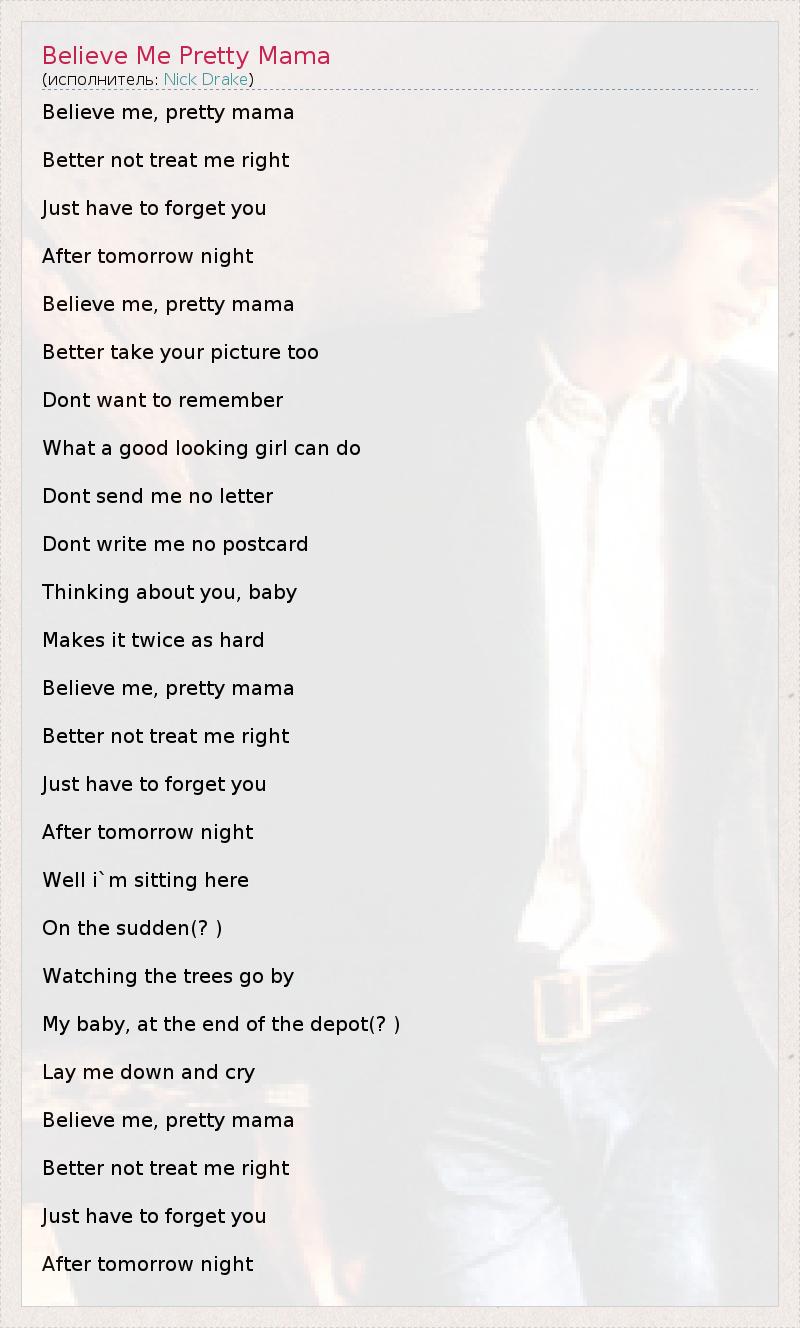 А как ты думаешь, о чем песня "Believe Me Pretty Mama" ?