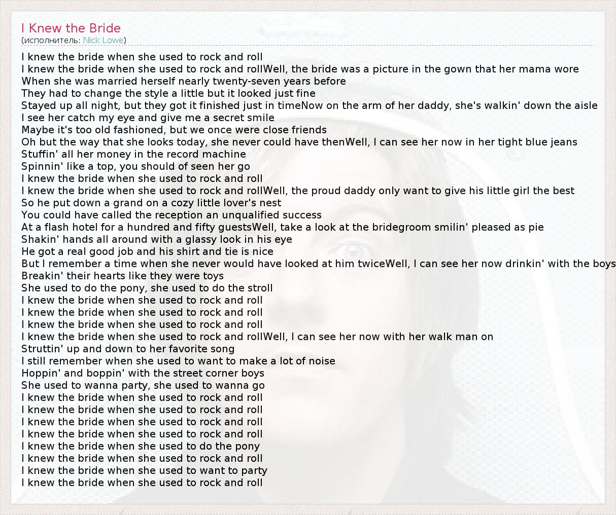 А как ты думаешь, о чем песня "I Knew the Bride" ?