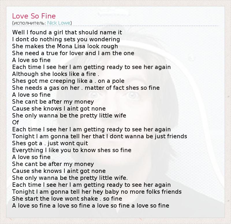 А как ты думаешь, о чем песня "Love So Fine" ?