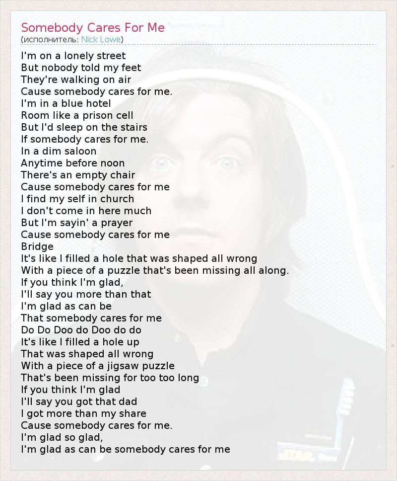А как ты думаешь, о чем песня "Somebody Cares For Me" ?