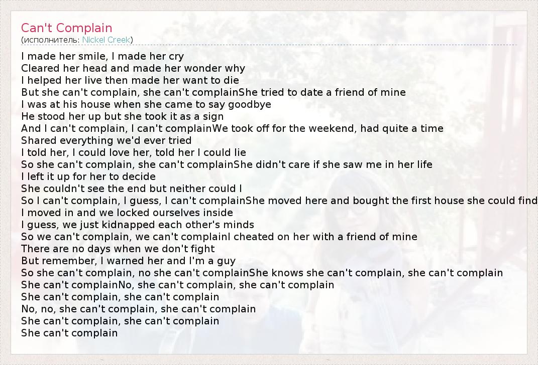 А как ты думаешь, о чем песня "Can't Complain" ?