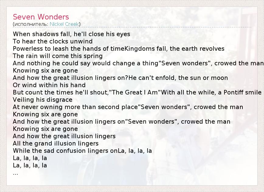 А как ты думаешь, о чем песня "Seven Wonders" ?