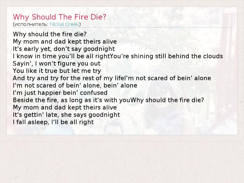 А как ты думаешь, о чем песня "Why Should The Fire Die?" ?
