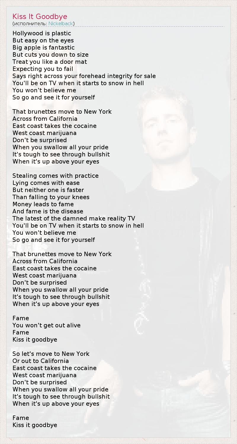 А как ты думаешь, о чем песня "Kiss It Goodbye" ?