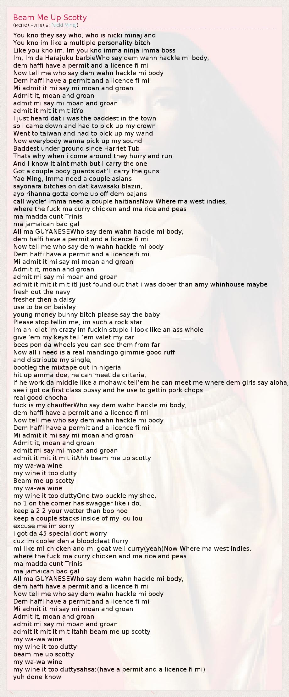 А как ты думаешь, о чем песня "Beam Me Up Scotty" ?