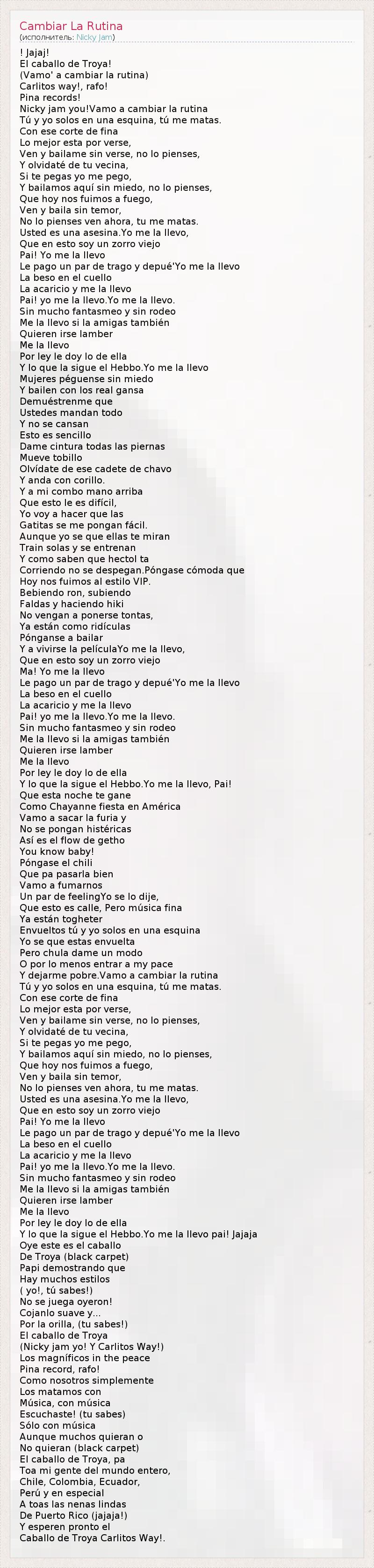А как ты думаешь, о чем песня "Cambiar La Rutina" ?