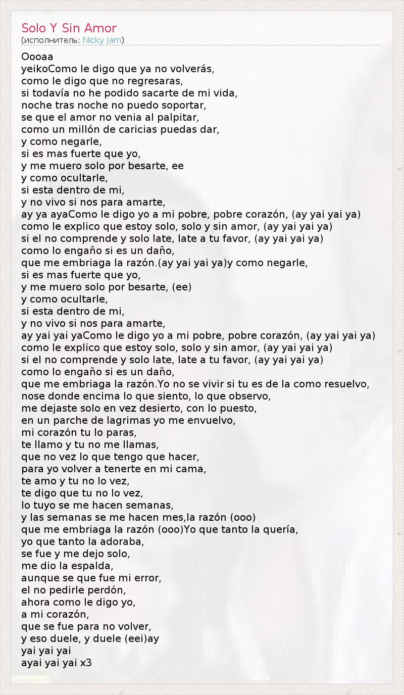 А как ты думаешь, о чем песня "Solo Y Sin Amor" ?
