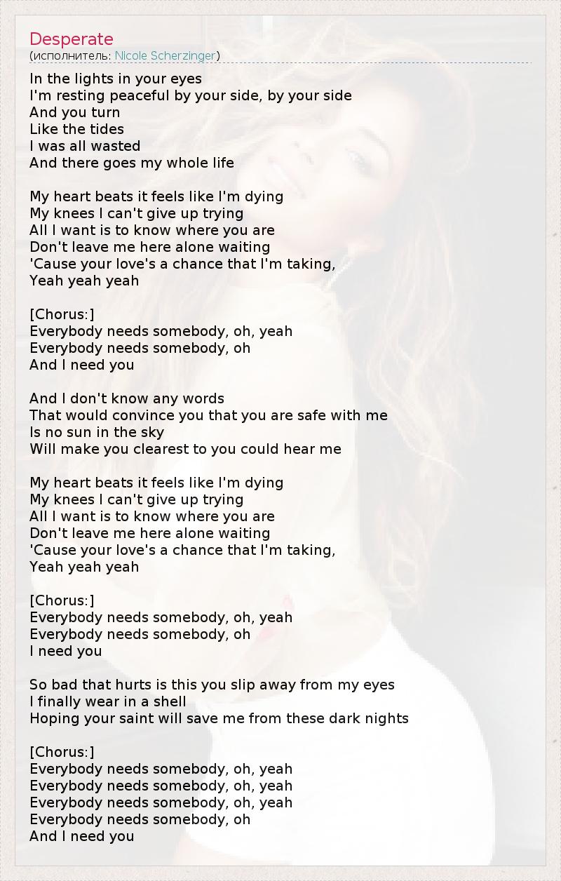 Everybody needs somebody, oh