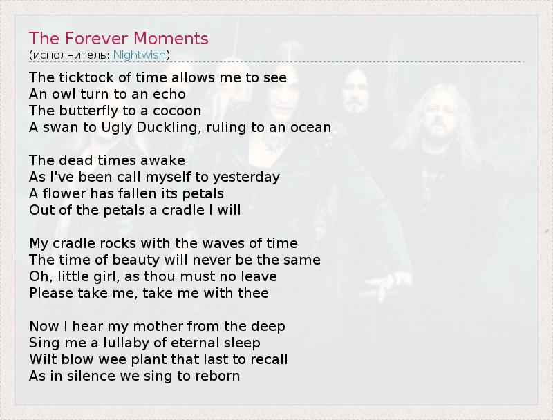 А как ты думаешь, о чем песня "The Forever Moments" ?