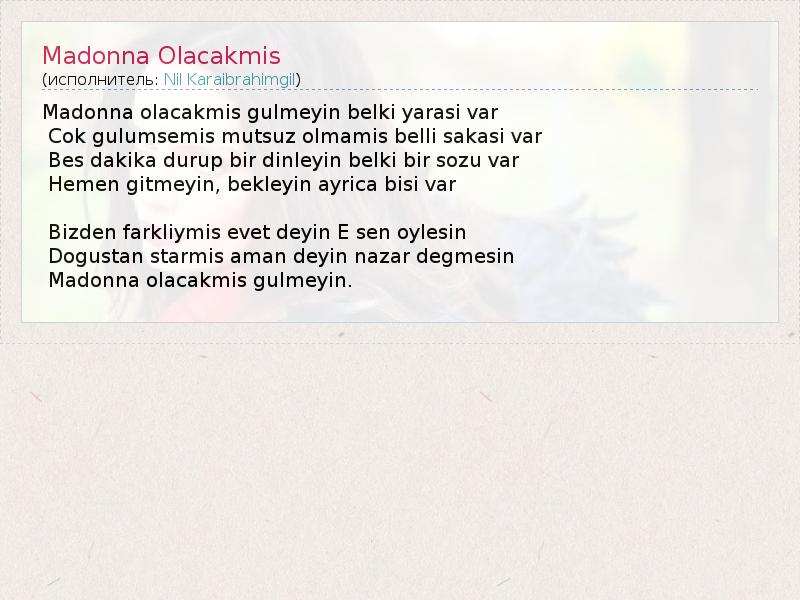 А как ты думаешь, о чем песня "Madonna Olacakmis" ?