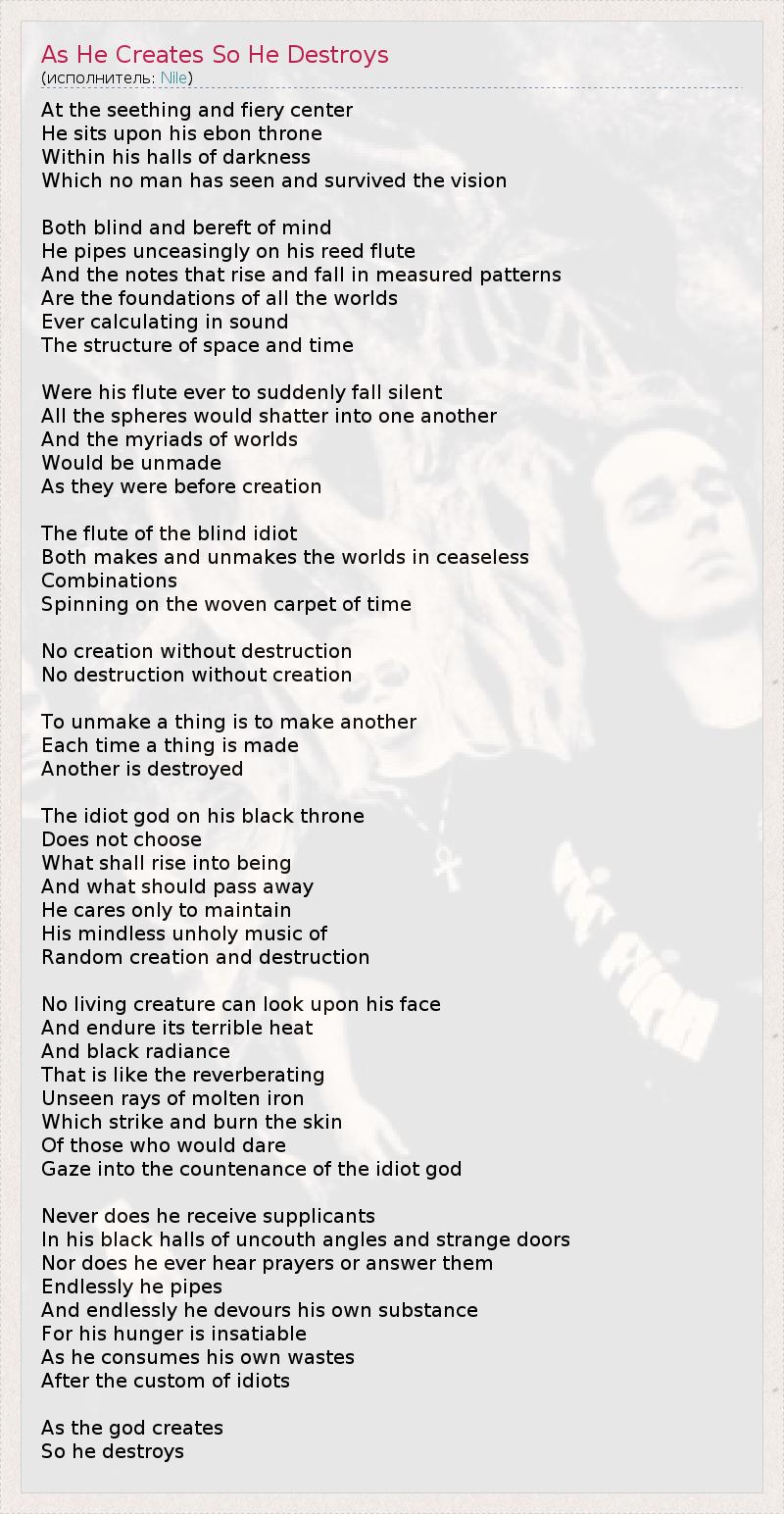ГлавнаяИсполнителиNileAs He Creates So He Destroys