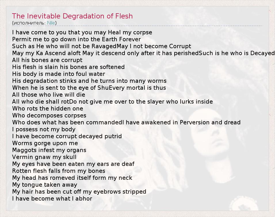 А как ты думаешь, о чем песня "The Inevitable Degradation of Flesh" ?
