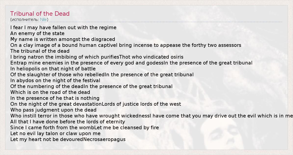 ГлавнаяИсполнителиNileTribunal of the Dead