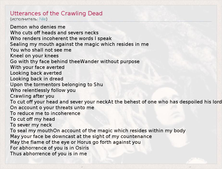 А как ты думаешь, о чем песня "Utterances of the Crawling Dead" ?