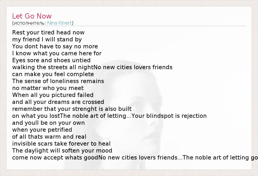 А как ты думаешь, о чем песня "Let Go Now" ?
