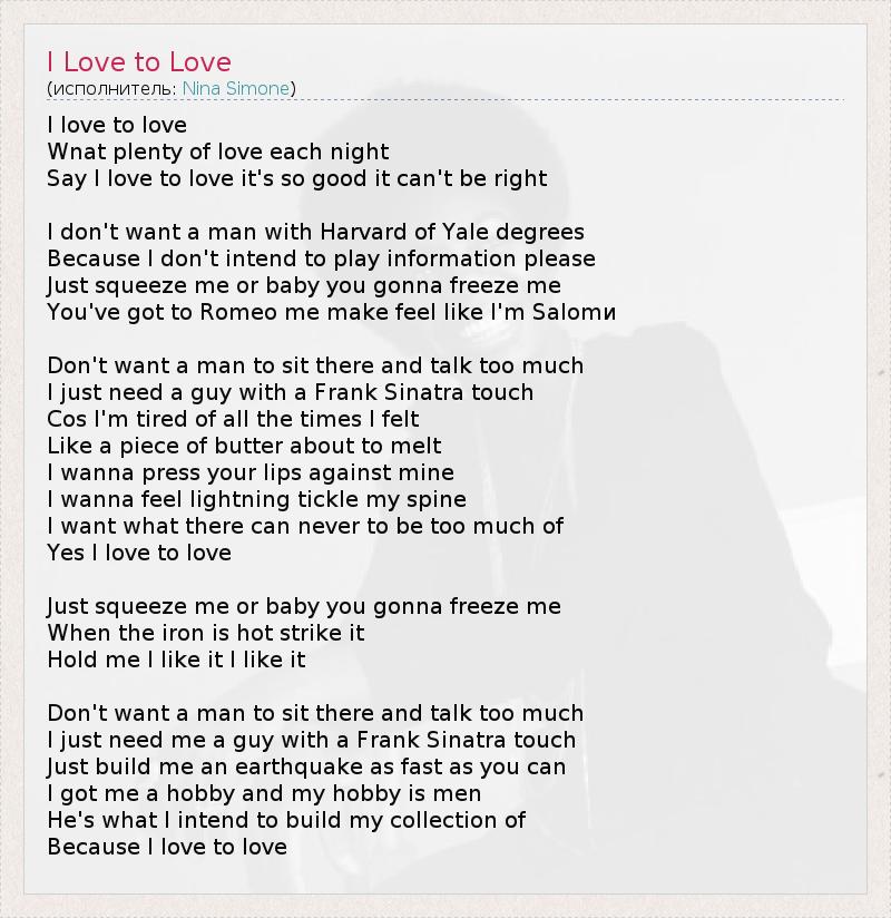 А как ты думаешь, о чем песня "I Love to Love" ?