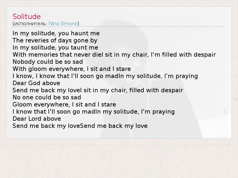 I know, I know that I'll soon go madIn my solitude, I'm praying