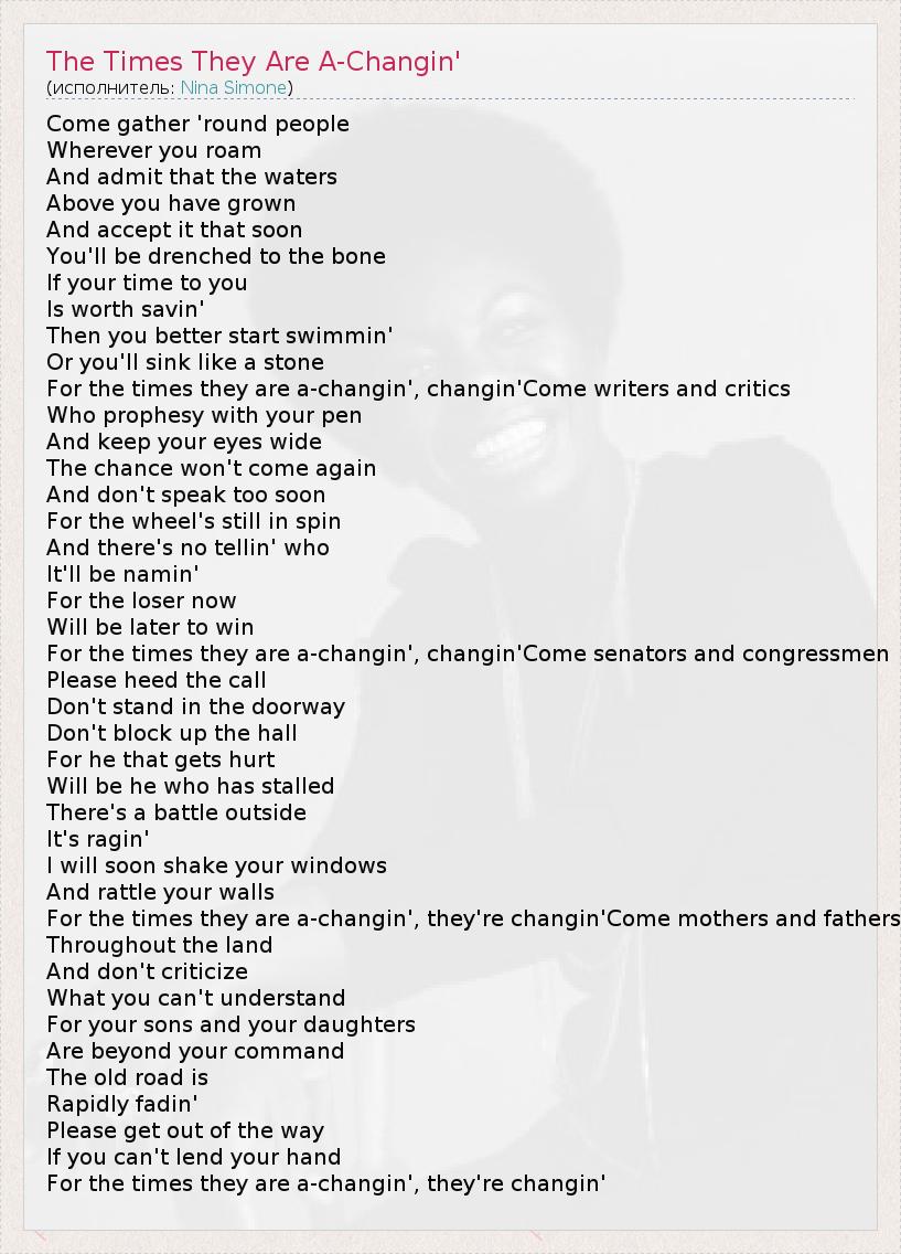 А как ты думаешь, о чем песня "The Times They Are A-Changin'" ?