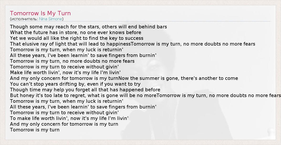 А как ты думаешь, о чем песня "Tomorrow Is My Turn" ?