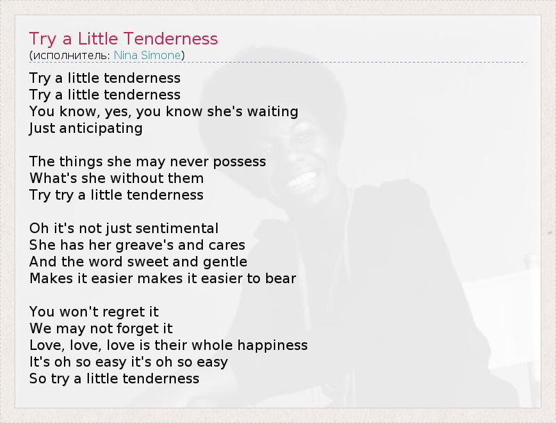 А как ты думаешь, о чем песня "Try a Little Tenderness" ?