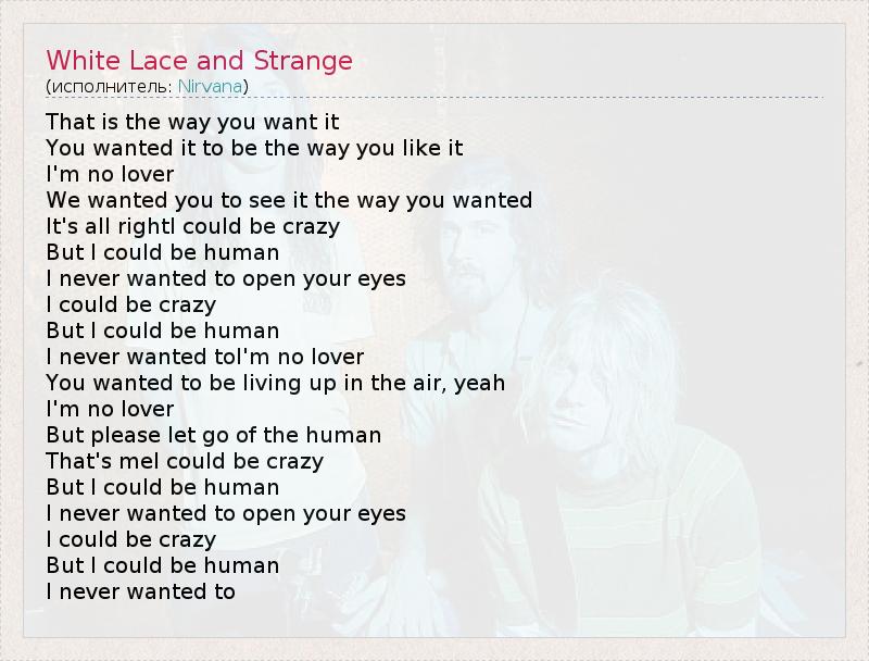 ГлавнаяИсполнителиNirvanaWhite Lace and Strange