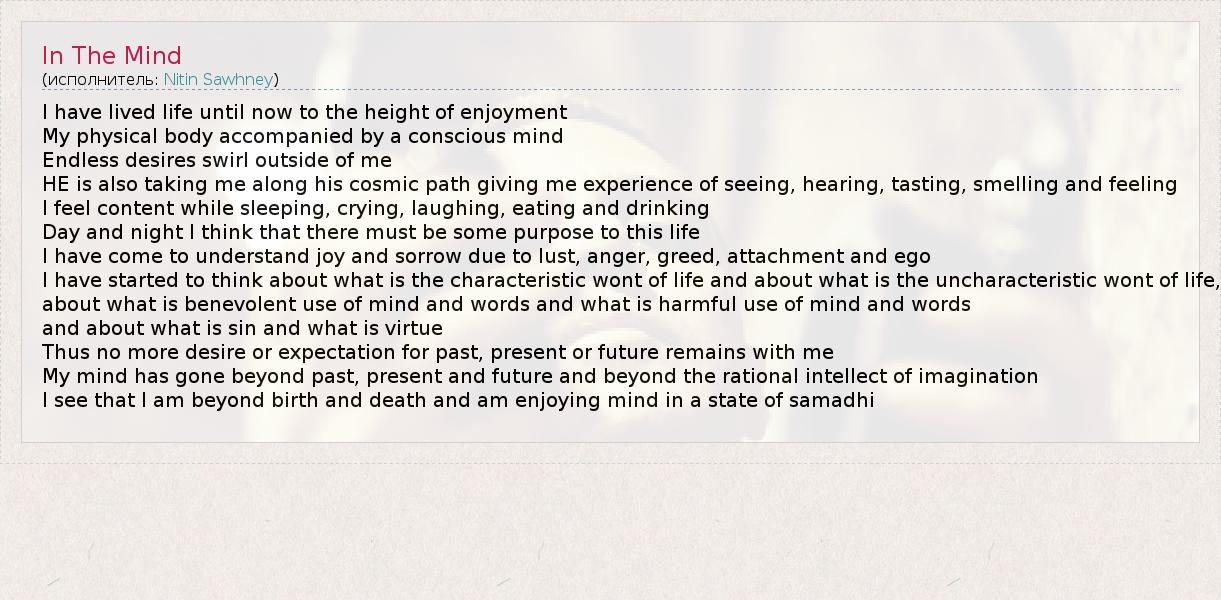 А как ты думаешь, о чем песня "In The Mind" ?