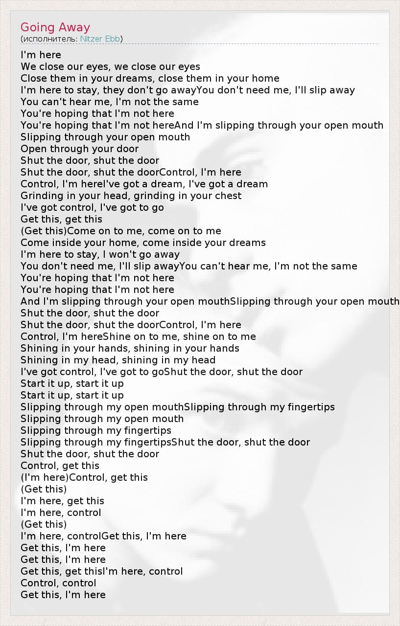 I'm here to stay, they don't go awayYou don't need me, I'll slip away