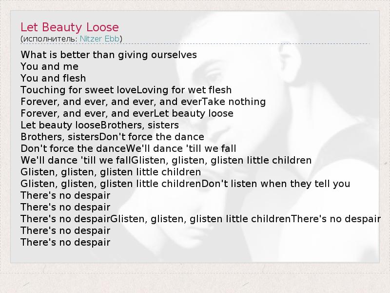 А как ты думаешь, о чем песня "Let Beauty Loose" ?