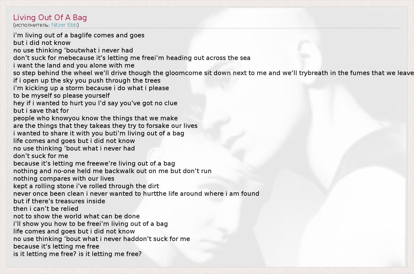 А как ты думаешь, о чем песня "Living Out Of A Bag" ?
