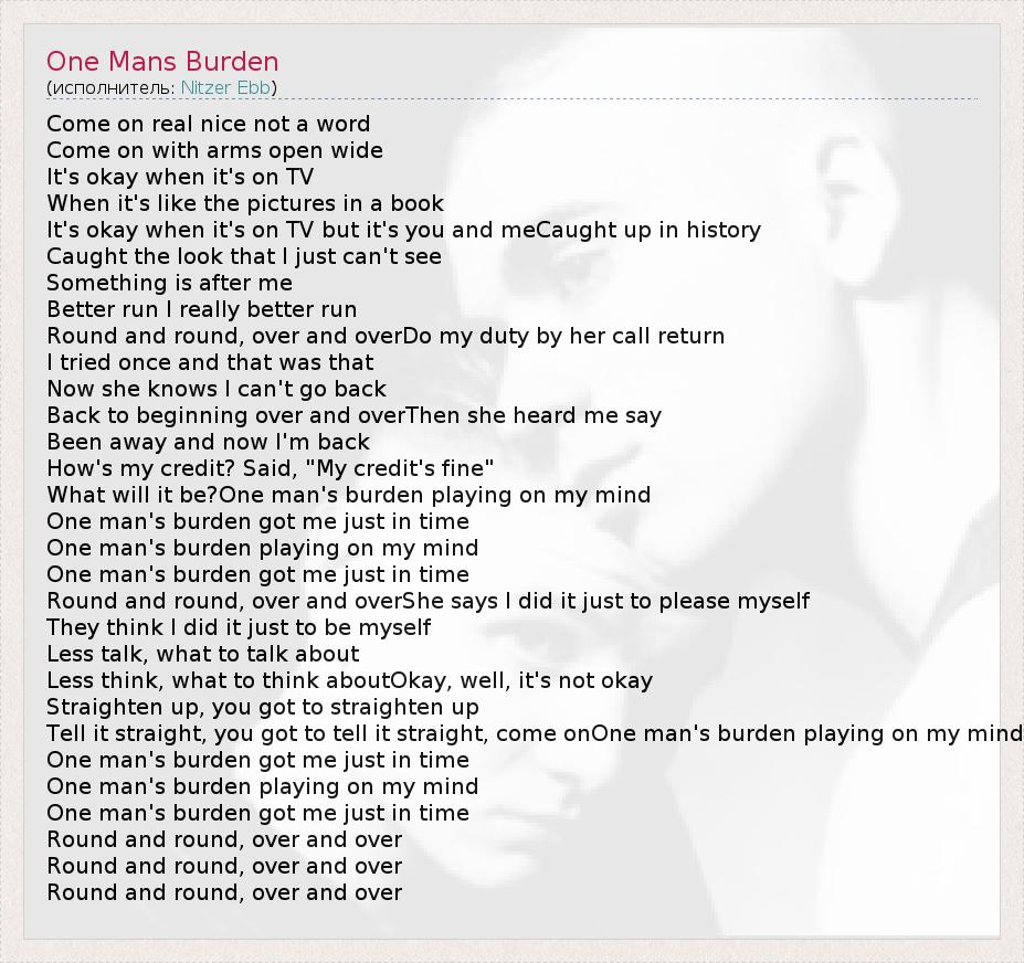 А как ты думаешь, о чем песня "One Mans Burden" ?