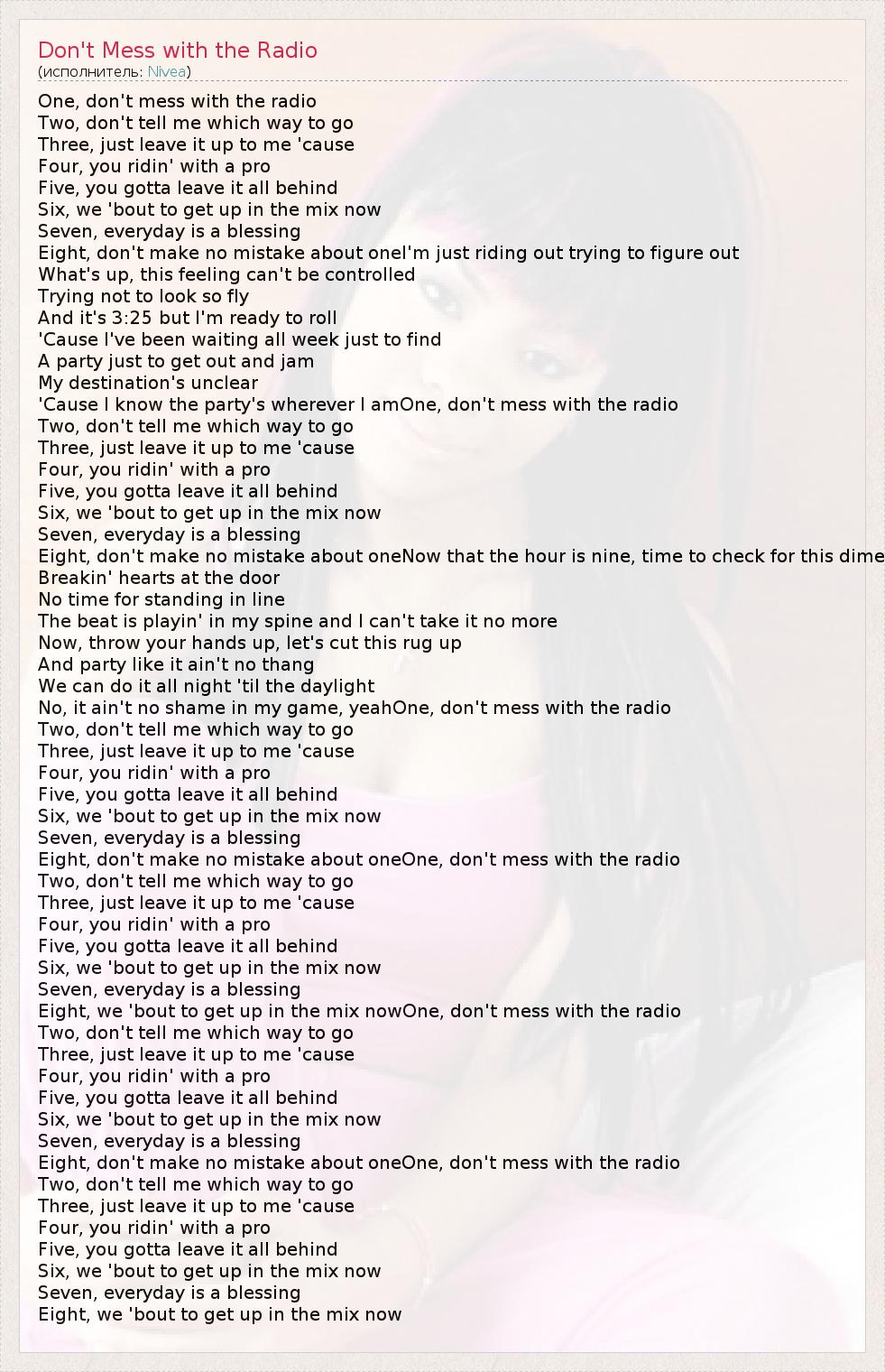 ГлавнаяИсполнителиNiveaDon't Mess with the Radio