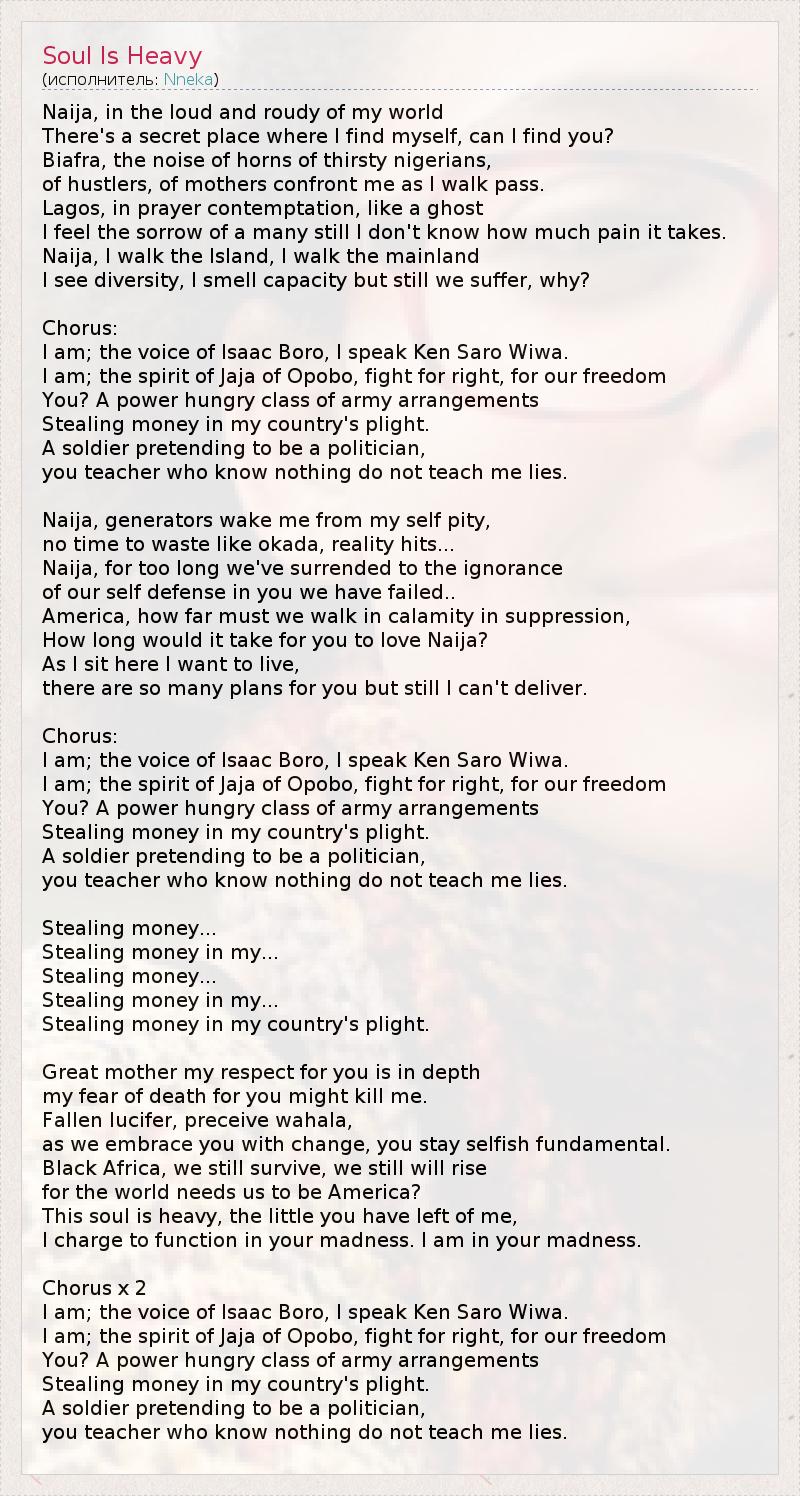 А как ты думаешь, о чем песня "Soul Is Heavy" ?