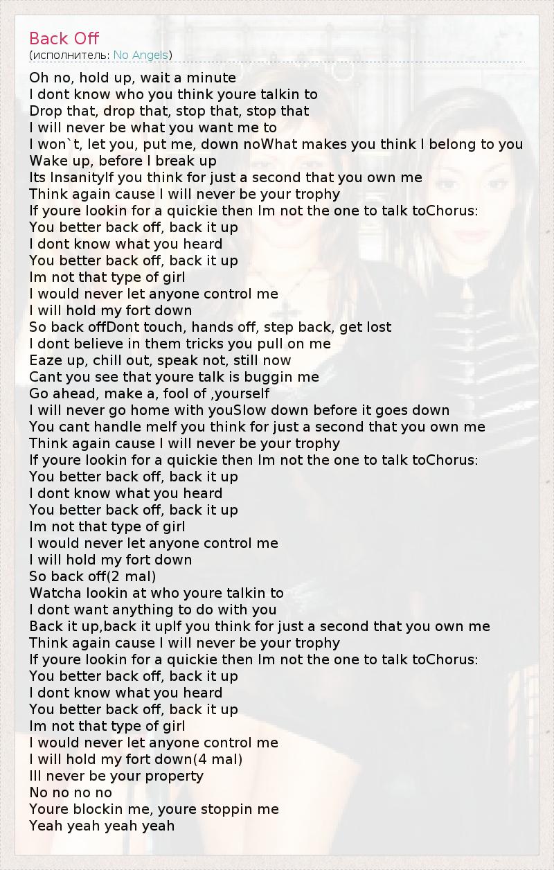 I won`t, let you, put me, down noWhat makes you think I belong to you