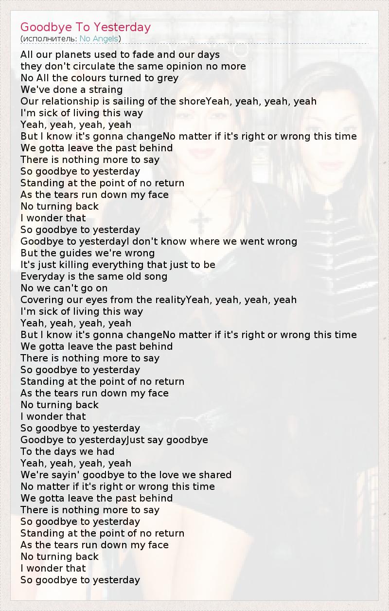 А как ты думаешь, о чем песня "Goodbye To Yesterday" ?
