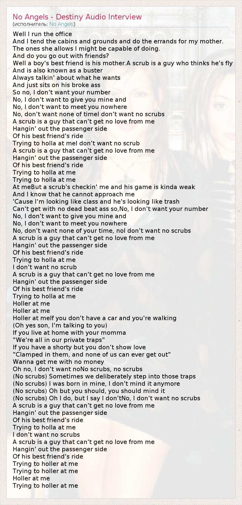 No, don't want none of timeI don't want no scrubs