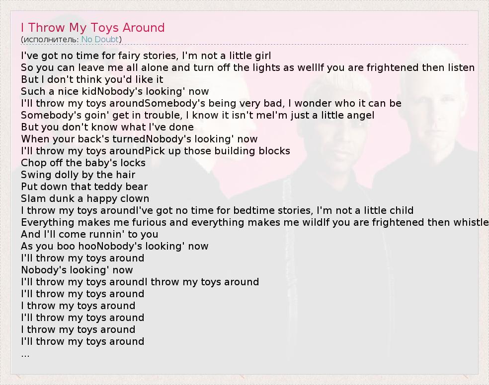 А как ты думаешь, о чем песня "I Throw My Toys Around" ?