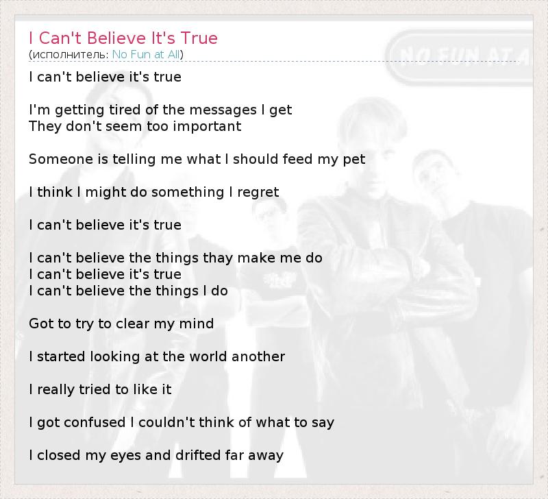 ГлавнаяИсполнителиNo Fun at AllI Can't Believe It's True