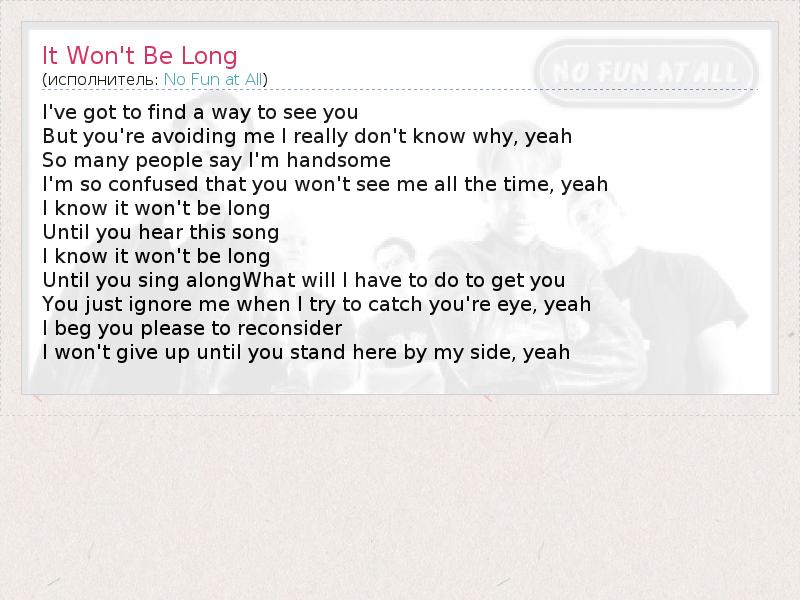 А как ты думаешь, о чем песня "It Won't Be Long" ?