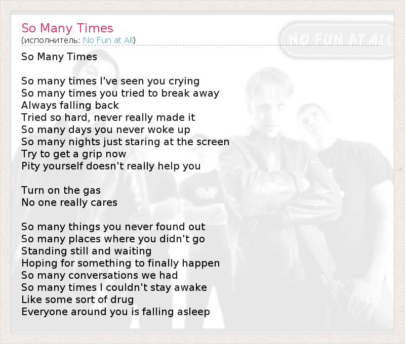 А как ты думаешь, о чем песня "So Many Times" ?